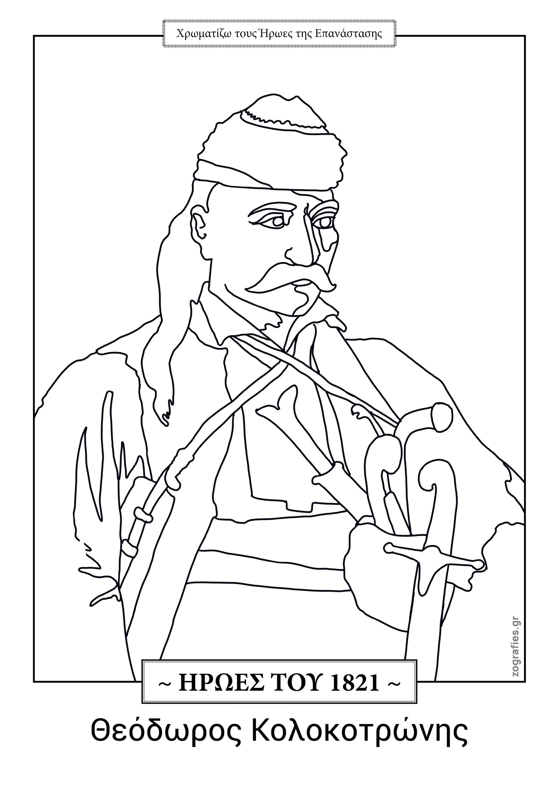 Ο Θεόδωρος Κολοκοτρώνης (Ραμοβούνι, Μεσσηνία, 3 Απριλίου 1770 – Αθήνα, 4 Φεβρουαρίου 1843) ήταν Έλληνας αρχιστράτηγος και ηγετική μορφή της Επανάστασης του 1821, οπλαρχηγός, πληρεξούσιος, Σύμβουλος της Επικρατείας. Απέκτησε το προσωνύμιο Γέρος του Μοριά. Μετά θάνατον τιμήθηκε από την Ελληνική Πολιτεία με τον βαθμό του Στρατάρχη.