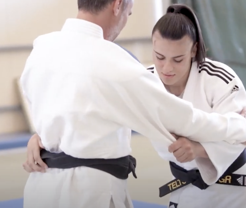 Ο Γιώργος Καπουτζίδης μαθαίνει τεχνικές του τζούντο με την Ελισάβετ Τελτσίδου.
