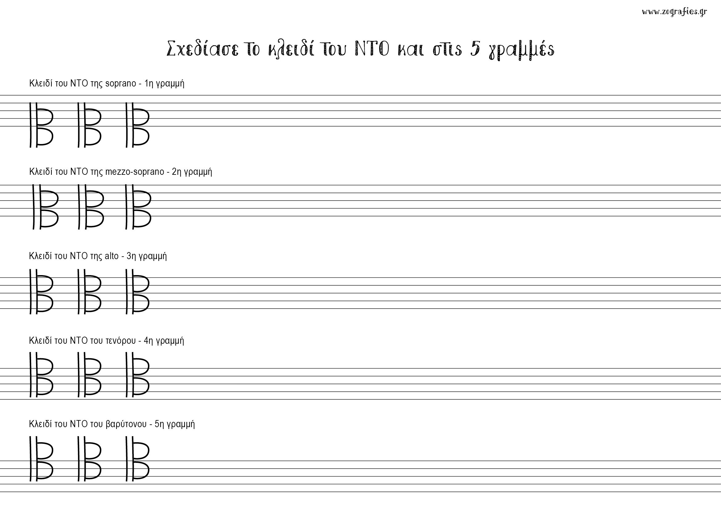 Μαθαίνω να σχεδιάζω το κλειδί του ΝΤΟ και στις 5 γραμμές.