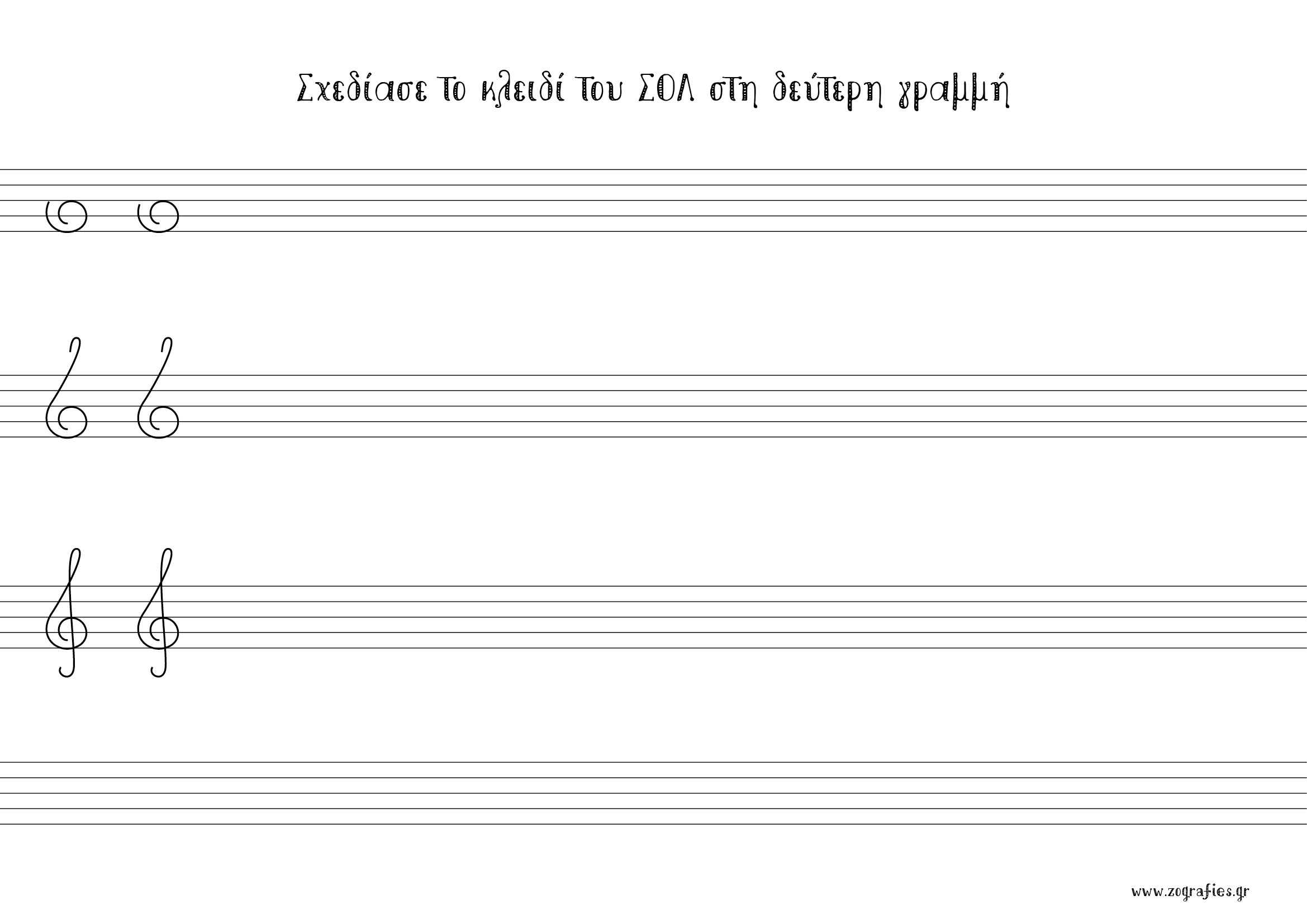 Μαθαίνω να σχεδιάζω το κλειδί του ΣΟΛ πάνω στο πεντάγραμμο.